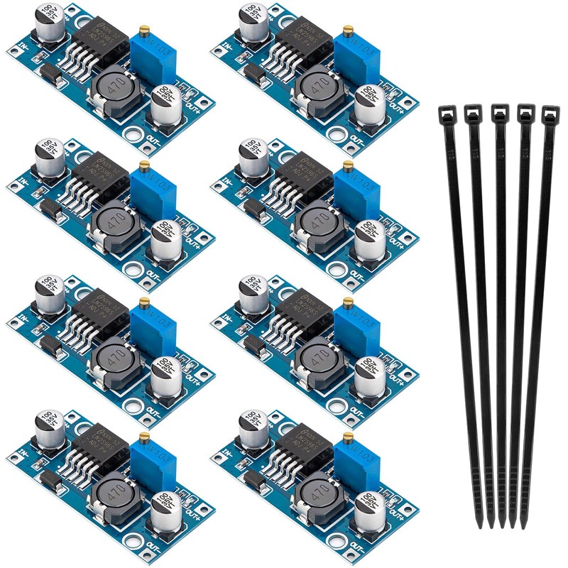 LM2596 DC-DC Buck Converter Module, 8 Pack Adjustable Voltage Regulator, 3.2V-46V Input (Recommended ≤40V), 1.25V-35V Output, 3A Max, Step Down Power Supply for Arduino, LED, DIY Projects