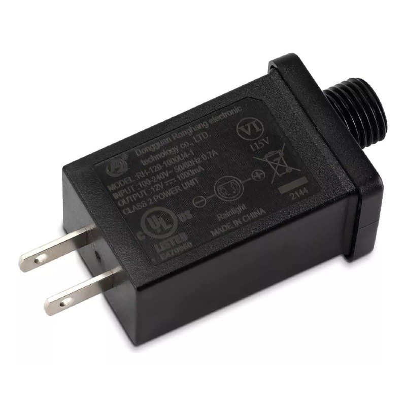 Especificación de la fuente de alimentación de clase 2: Entrada: 100-240V, 50/60HZ, 0.7A, salida: 12V, 1000mA, vatios nominales 12W. Adaptador de corriente certificado UL, transformador de 110 V adecuado para la mayoría de fuentes de alimentación domésticas en los Estados Unidos