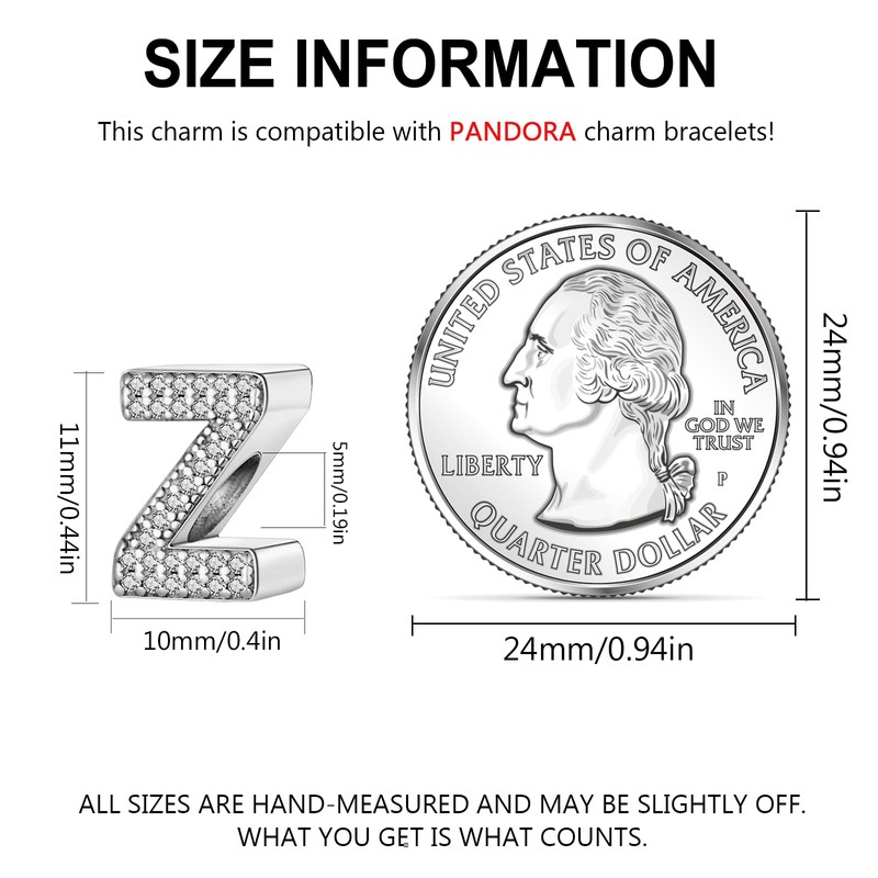 LMLMECREA Letter A-Z Charm Beads with Zirconia - Initials Alphabet Beads 925 Sterling Silver - Compatible with European Women's Bracelet & Necklace, Sterling Silver, Cubic Zirconia
