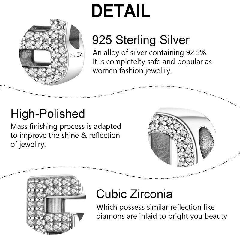 - 925 sterling silver letter charm: The charm pendant with initials made of 925 sterling silver is set with high-quality 5A+ zirconia stones and polished by hand to preserve its shine. It is ideal for everyday use.