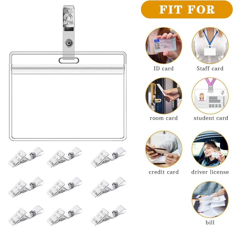 - Packaging includes: 15 transparent card bags and 15 metal badge clips