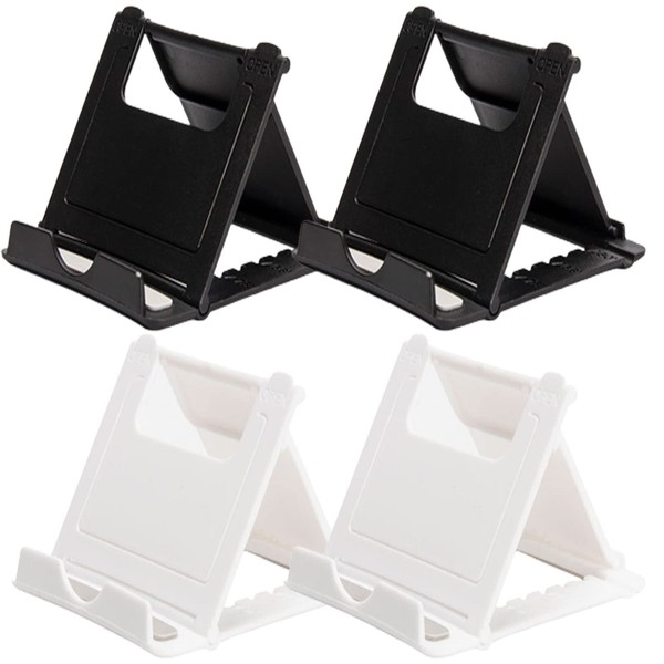 LMOGWL 4pcs Foldable Phone Holder, Universal Multi-Adjustable Phone Stand, Portable Pocket Desktop 6-11 Inch Tablet Stand Compatible with Smartphones (Black 2 White 2)