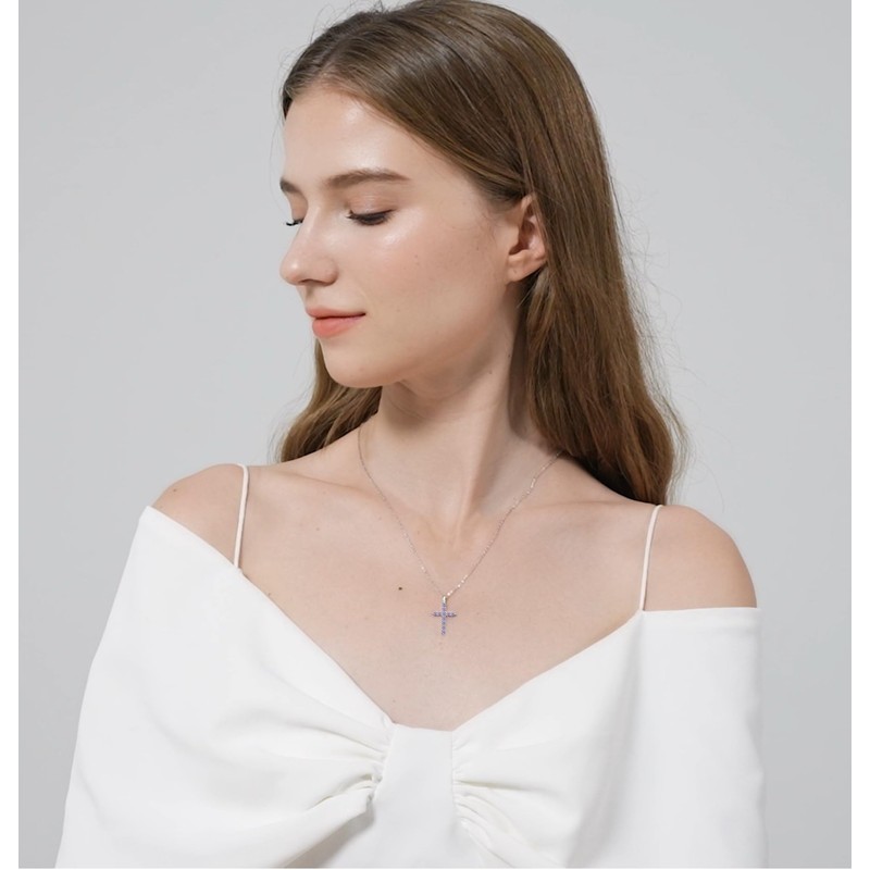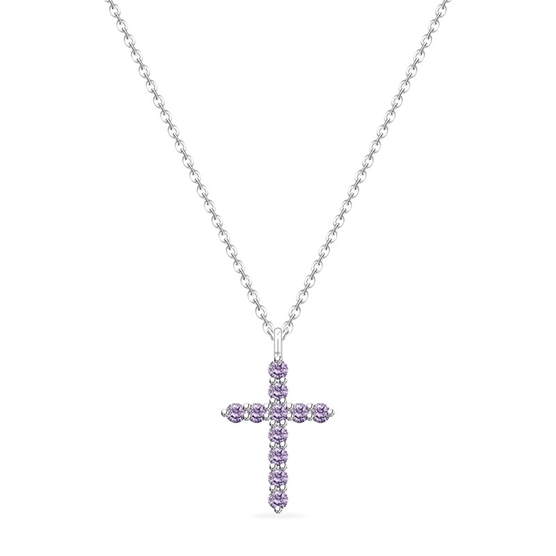 LMXXVJ Created Purple Amethyst Cross Faith Necklace for Women,Cross Pendant Small Layered Necklace Jewelry,Birthday Anniversary Festival Prom Gift,Silver-Tone