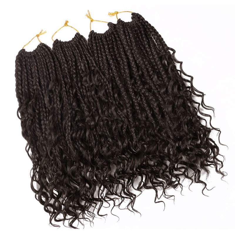 LMZIM 12 Inch Boho Box Braids Crochet Hair Bohomian Crochet Box Braids Curly Ends 8 Pack 3X Crochet Braids Synthetic Braiding Hair Extension (12inch, 4)