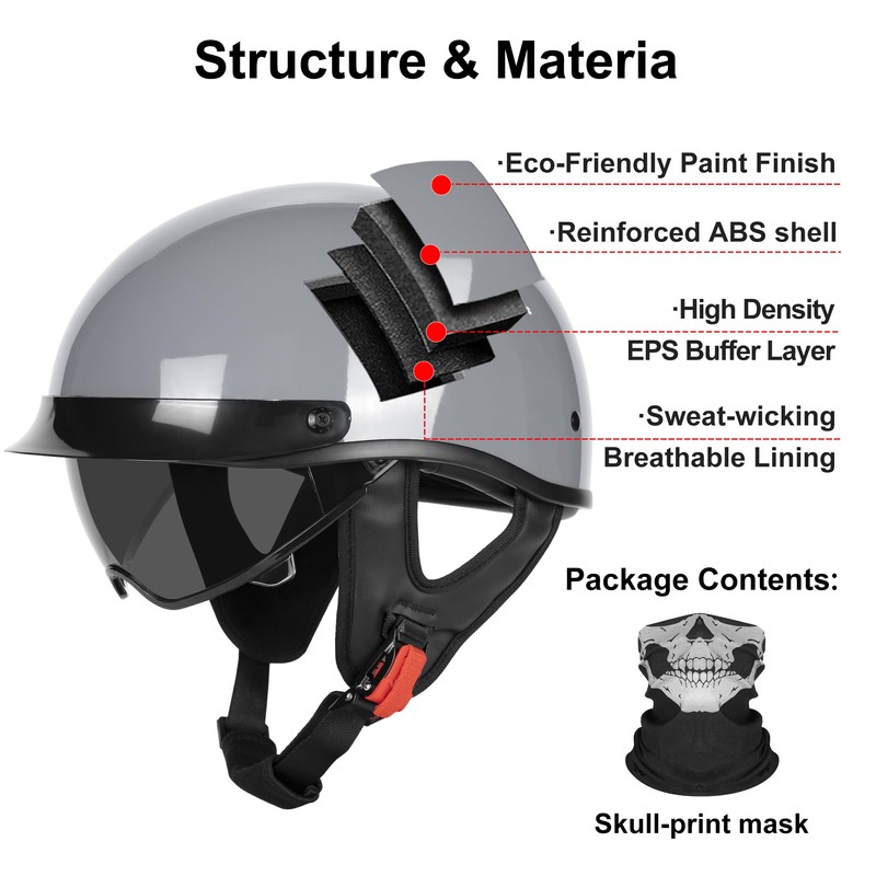 - 【Classic Retro Design】The half-face motorcycle helmet represents an exemplary fusion of comfort, style, and functionality. Featuring lightweight construction and a classic retro design, it provides a comfortable fit while preserving a timeless aesthetic that commands attention on the road.