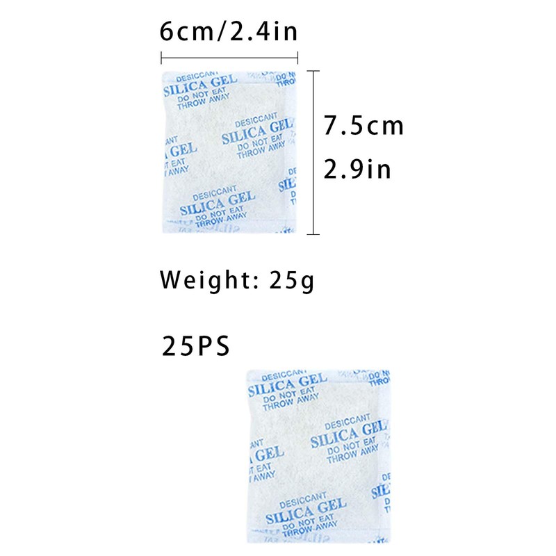 - 25g × 25pcs silica gel bags, you can use silica gel desiccant in dog and cat food houses, cars, wardrobes, bags, crafts and furniture.