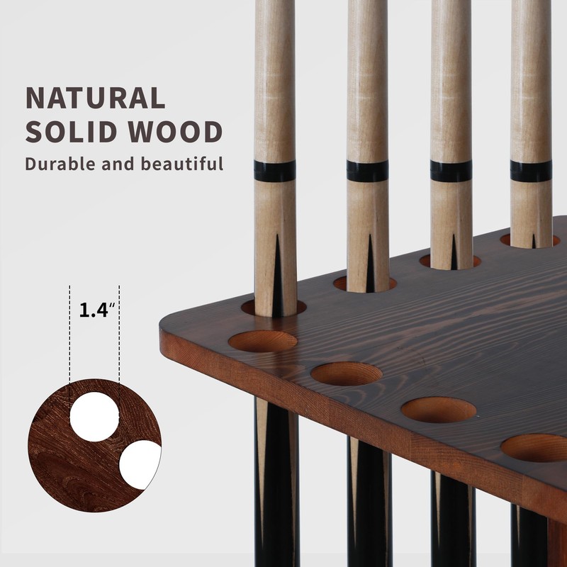 - 【Sturdy and Durable Natural Wooden Billiard Cue Holder】The billiard cue holder is made of high quality wood, which retains the natural touch of wood, beautifully crafted. heavy duty wooden center post makes this cue rack very sturdy, durable and not easy to break.