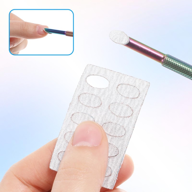 - Package Included:You will get 1 dual ended cuticle remover, 50pcs 150 grits coarse sandpaper and 50pcs 240 grits fine sandpaper.(each sandpaper has 5 sheets,and each sandpaper sheet has 10pcs oval sandpaper flake).
