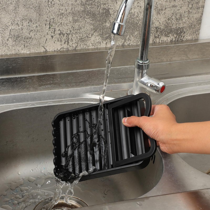 Lnngub Pot Lid Holder, Spoon Rest, Foldable Black Plastic Pot Lid Stand, Multifunctional Kitchen Utensils, Storage Box for Pot Lid, Spoon, Chopsticks, Spatula, Tableware