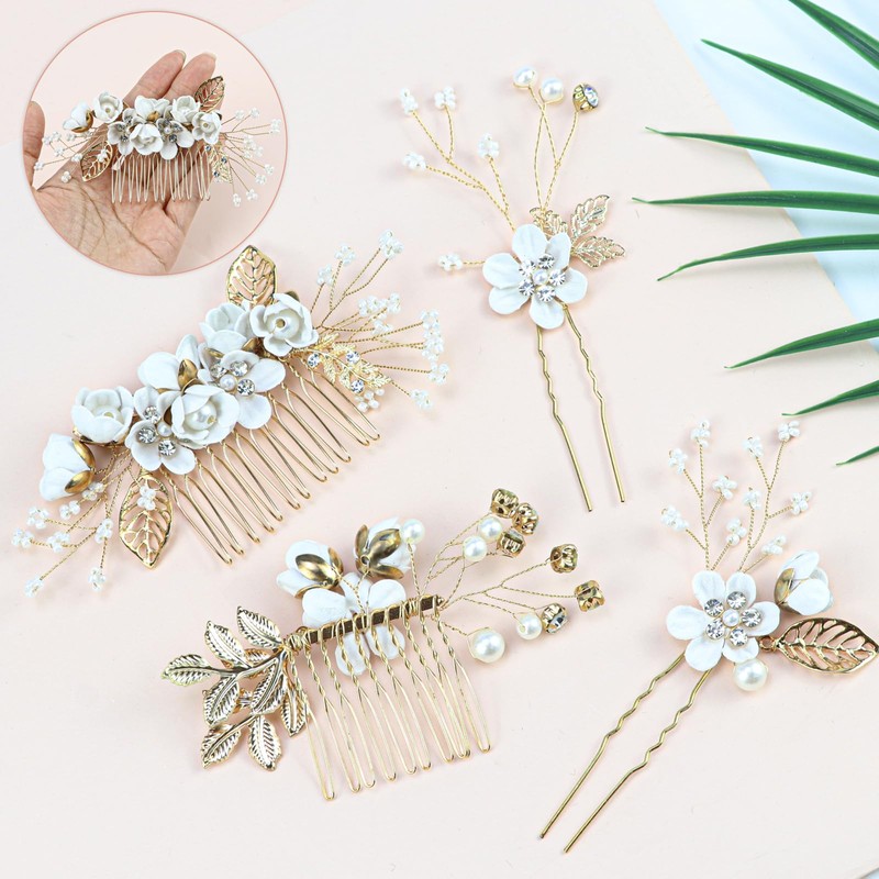 - Packungsinhalt: Sie erhalten ein 4 Stück an hochzeit blumen haarschmuck (2 Haarkämme, 2 U-Haarstab), die einfach in das haar gesteckt und fest verankert werden können, ohne leicht zu verrutschen