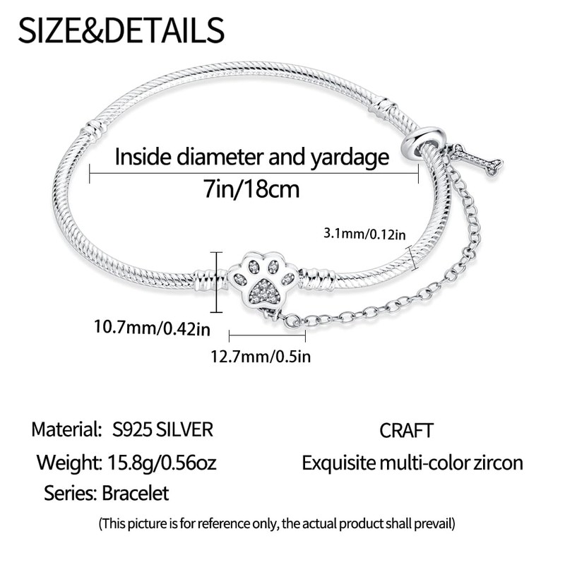 - Packaging : 1x Charm Bracelet, 1x Jewelry packaging bag ,1x jewelry cleaning cloth,1 random coloured beads (necklace and bracelet not included)