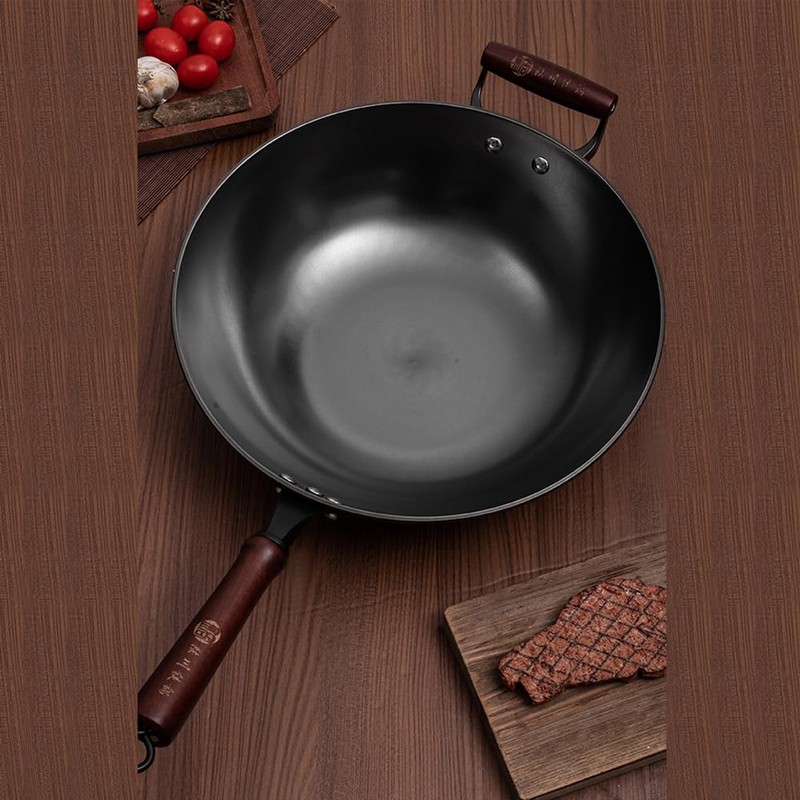- HIGH CAPACITY: Large 36cm diameter with curved sides offers ample cooking space for family meals and easy food tossing. Designed to lock in juices and flavors, this wok is ideal for preparing Chinese, Japanese, Thai, and other Asian dishes.