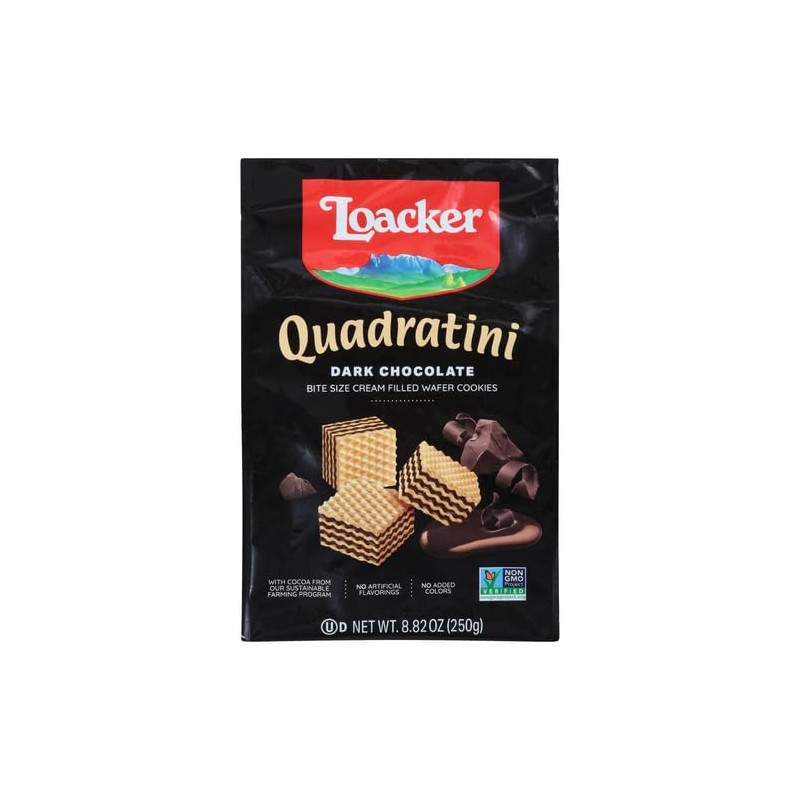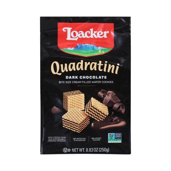 Loacker Quadratini Bite Size Wafer Cookies, Dark Chocolate, 8.82 oz