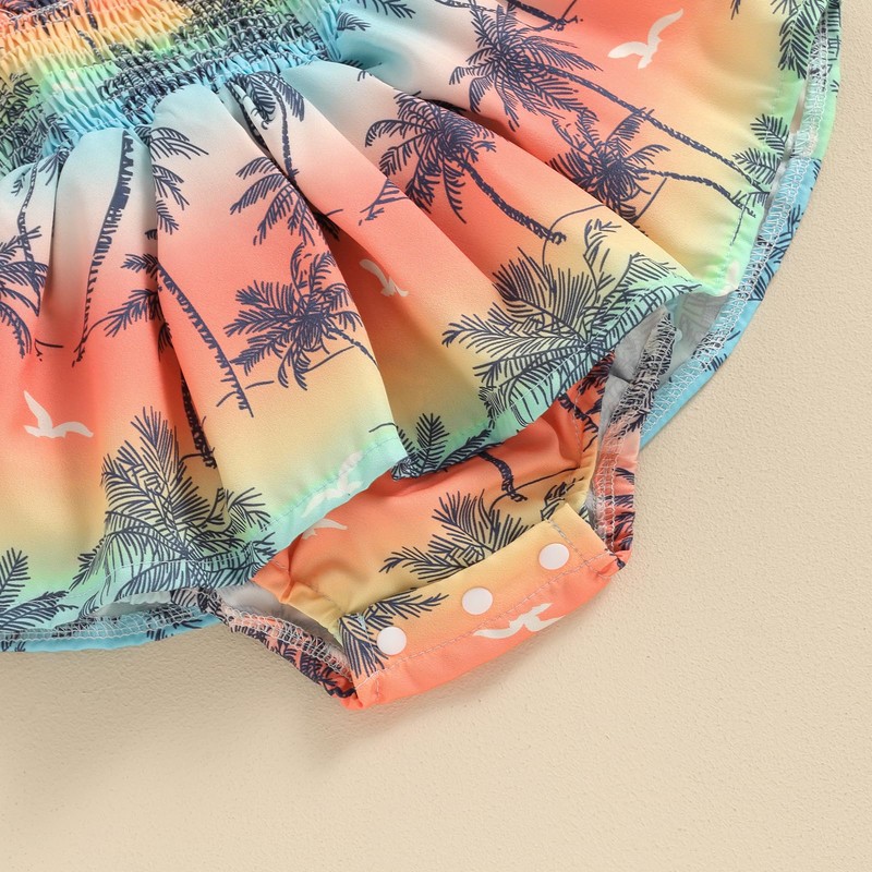 - Design: The sleeveless baby jumpsuit features charming Bohemian beach patterns, coconut tree prints and sunsets, sleeveless, square neck, snap closure at the bottom for easy diaper changing, making it perfect for a fashionable summer look