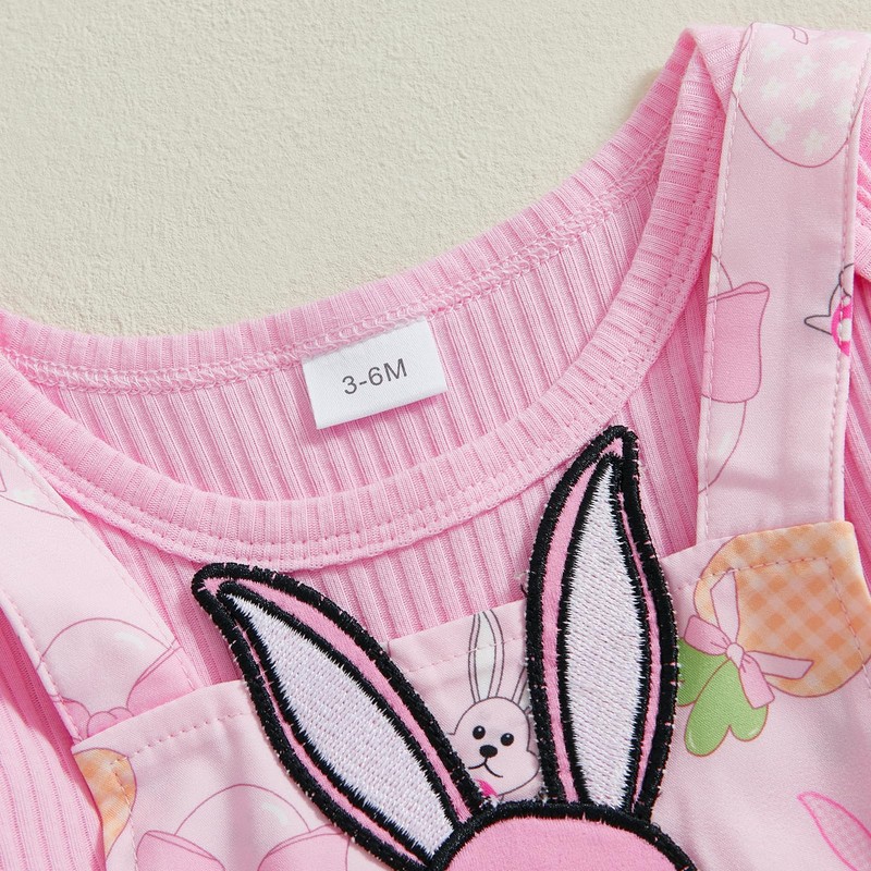 - Design: New Baby Girls Easter Set, infant girl easter dress, baby easter outfit girl, crew neck t-shirt romper, bunny print romper, baby girls bunny slip dress, two-piece clothes set. long sleeve romper, paired with bunny dress suspender skirt overall matched with cute headband