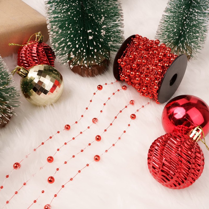 - [RED BEADS GARLAND]- 98 feet red beads garland in pack, long length garland could be used to several Christmas trees and more Xmas occasions