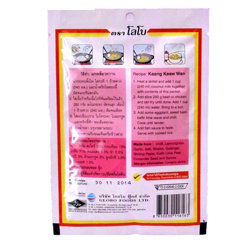 Lobo Green Curry Paste 1.76oz. (3 Sachets)