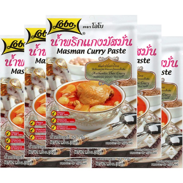 Lobo Masaman Curry Paste - No MSG, No Preservatives, No Artificial Colors (Pack of 5)