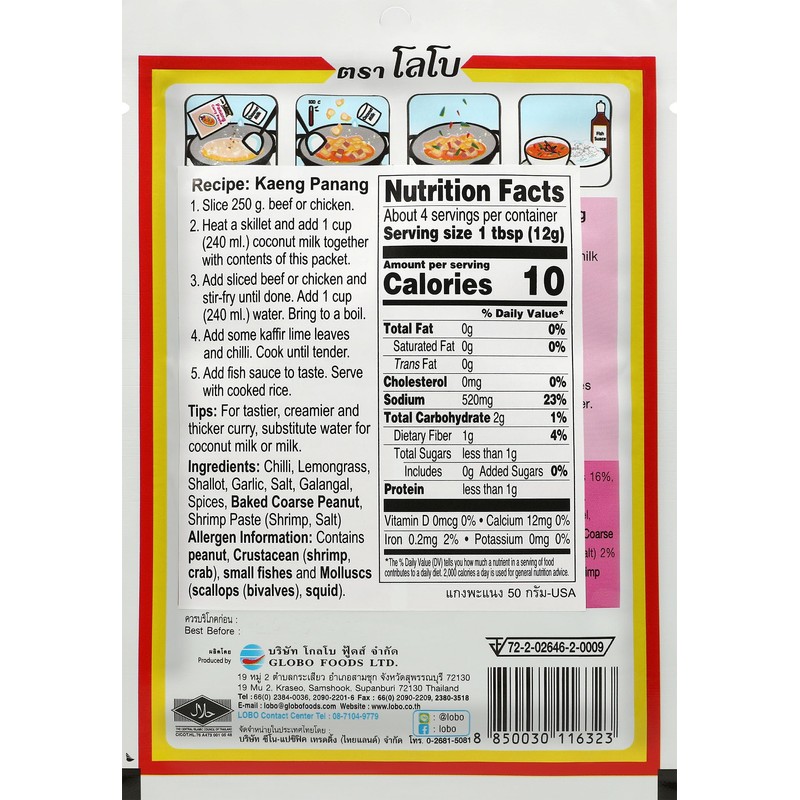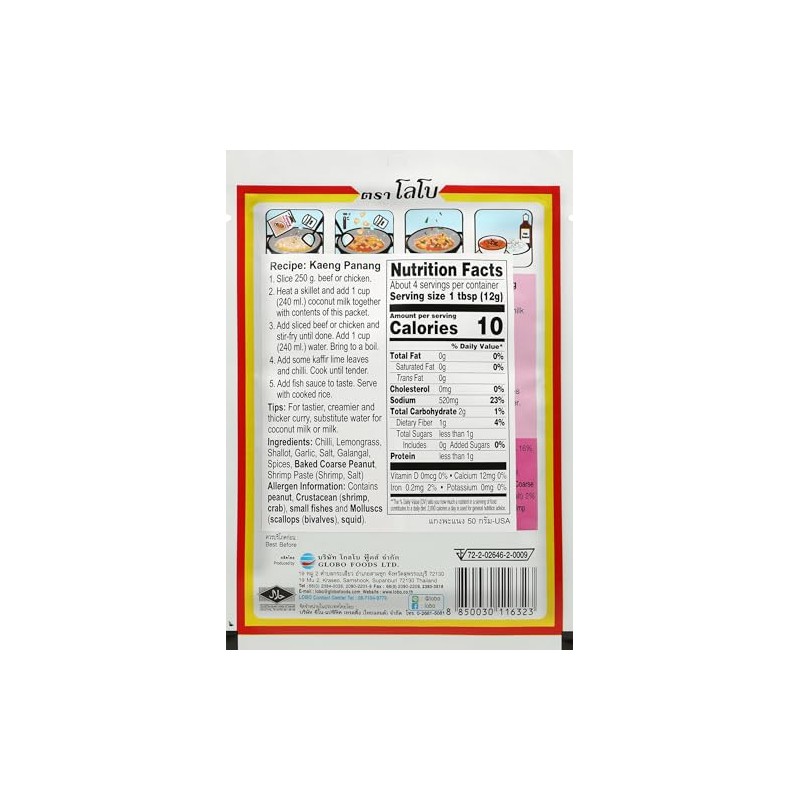 Lobo Panang Curry Paste - No MSG, No Preservatives, No Artificial Colors (Pac...