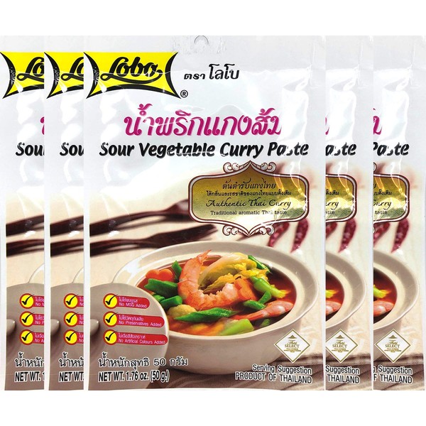 Lobo Sour Vegetable Curry Paste Thai Herbal Food 50 G (1.76 Oz) X 5 Bags