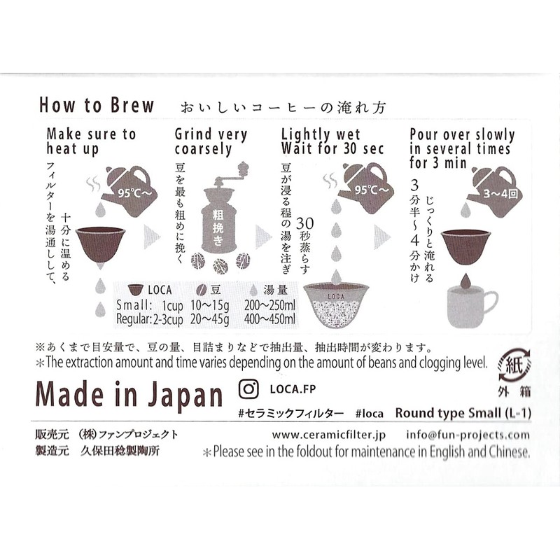 LOCA Ceramic Coffee Filter Small 1-2 Cup Coffee Dripper No Stand