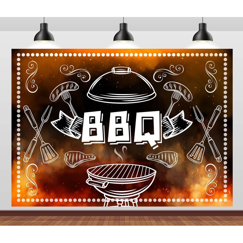Loccor 5x4ft Fabric BBQ Backdrop Barbecue Tools with Flame Summer Barbecue Party Background Picnic Birthday Party Decorations Photo Studio