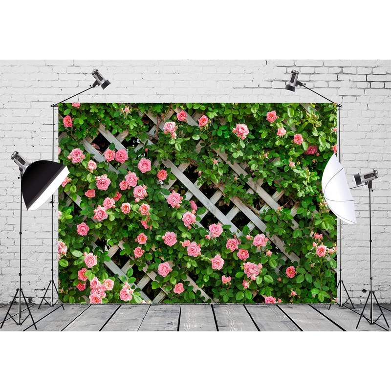 Loccor 6x4ft Fabric Flowers Backdrop Spring Floral Photo Backdrop Green Leaf Grass Fence Photography Background Birthday Party Decoration Wedding Bridal Valentine's Day Banner Photo Studio Props