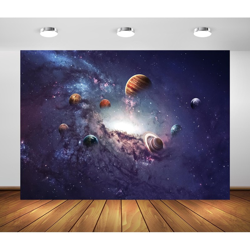 Loccor 7x5ft Fabric Space Solar System Backdrop Starry Sky Nebula Planets Universe Galaxy Photography Background Space Astronomy Backdrop Home Artistic Decor Birthday Baby Shower Photo Props