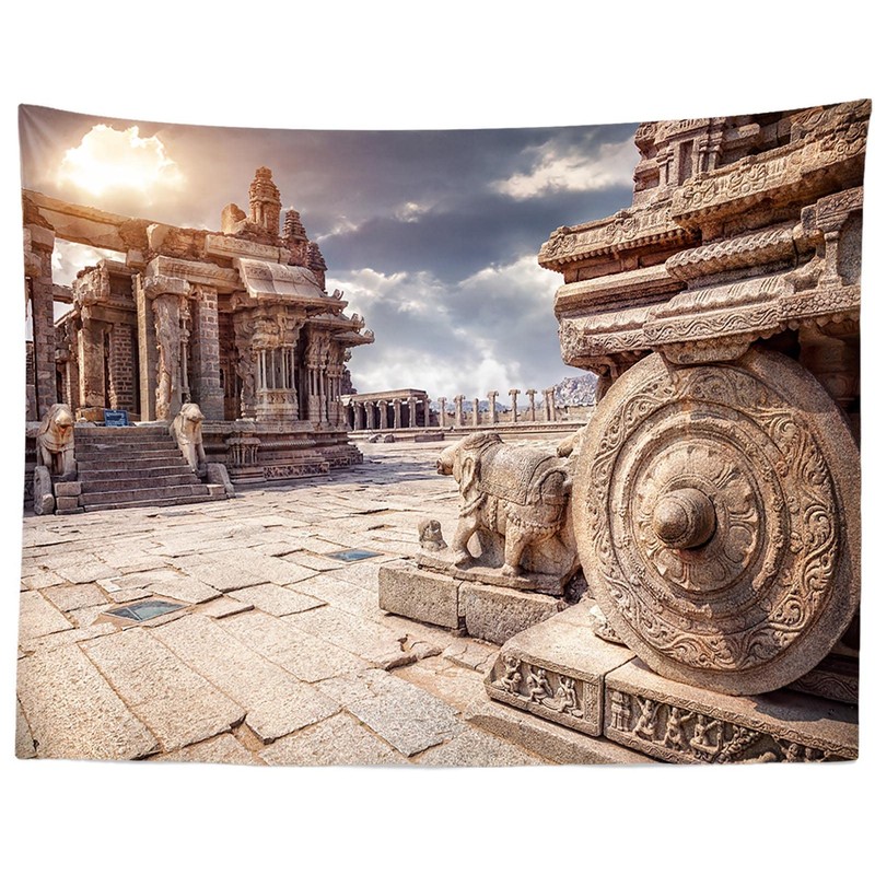 Loccor Fabric 9x6ft Indian Vittala Temple Backdrop India Temple Courtyard Stone Chariot Sunset Sky Photography Background Indian Landmark Religious Travel Portrait Photo Booth Studio Props Wallpaper