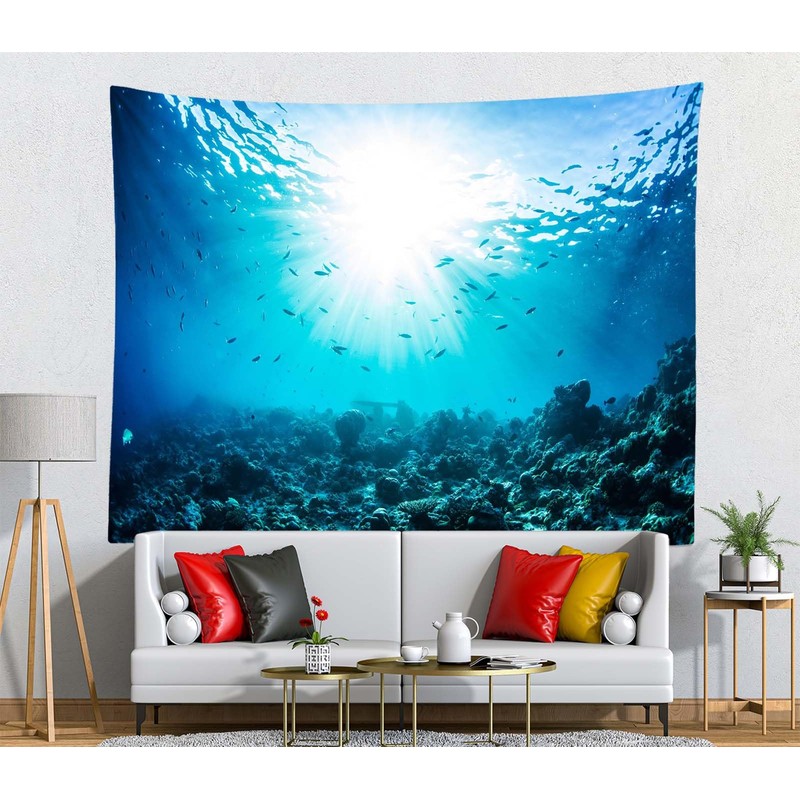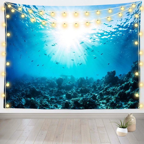 Loccor Underwater World Tapestry Blue Ocean Under the Sea Reef with Sunlight Marine Aquatic Wall Hanging Ocean Theme Birthday Party Decorations Home Wall Decor 60''x40''