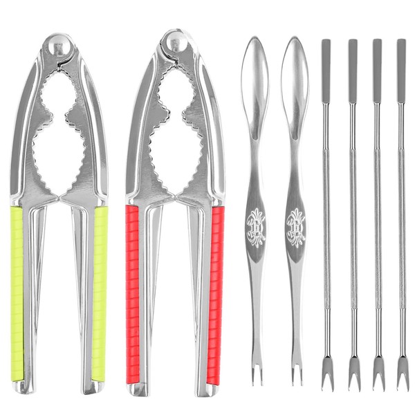 - Packag included: 2Pcs of nut cracker in different colors. 6Pcs Stainless Steel Seafood Forks. Great for crab, lobster, oysters and more. You can use these tools to enjoy your meal better.