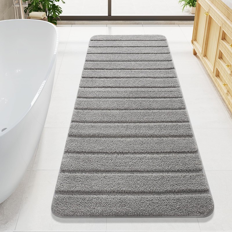 LOCHAS Long Bathroom Rugs Runner, 24" x 60" Large Bath Rug Non Slip Washable, Absorbent Microfiber Bath Mat Luxury Soft, Cozy Bathroom Runner Rug for Shower Quick Dry, Grey