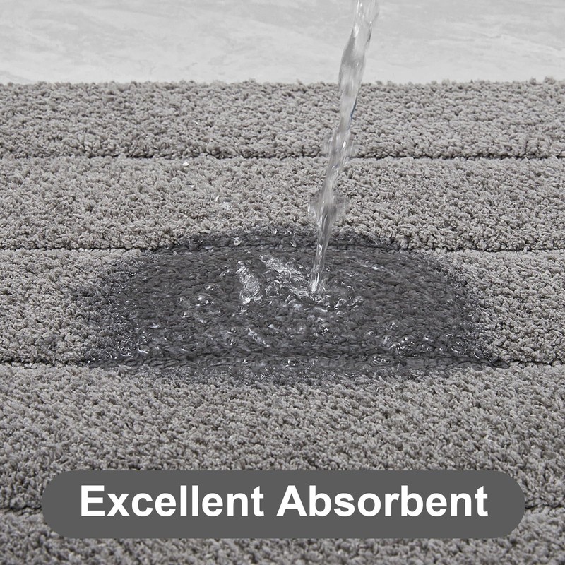 - Instant Water Absorption: The dense microfiber pile on the surface of the 60 inch bathroom rug can quickly absorb water in 1-2 seconds, and with the rubber backing, it prevents water from flowing onto the floor in order to keep the floor dry