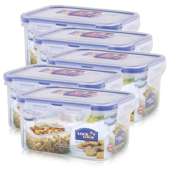 Lock&Lock HPL807 Vorratsdose 470ml - Luft und Wasserdicht - rechteckig (5er Pack)