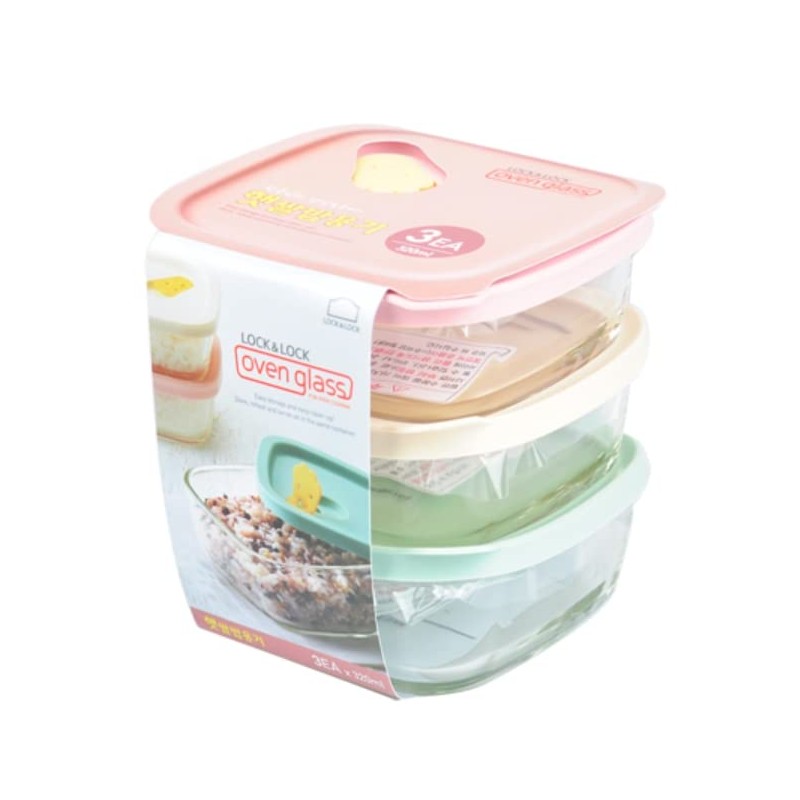 Lock&Lock Oven GLass Cooked Rice Storage Container for Freezer pastel color Set of 3