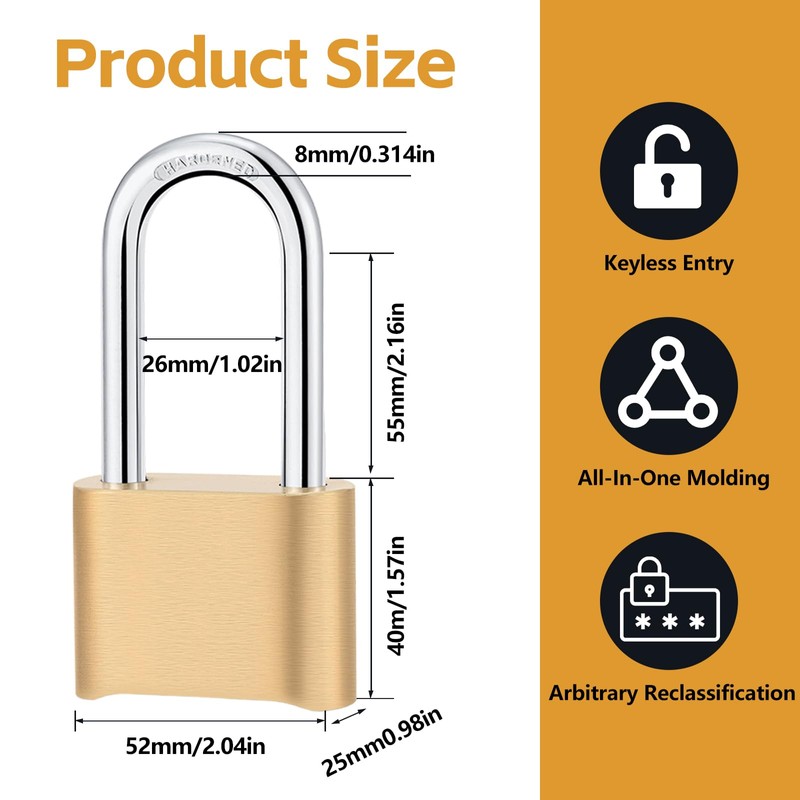 - Improved design: the padlock numbers have an extended body, the extension of the beam can effectively resist the impact and breaking of external forces, providing a higher level of safety protection.