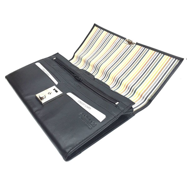 Lockable Leather Travel Wallet Organiser Document Holder. (Black)