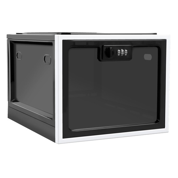 Keep your belongings safe and organized with this versatile lockable storage box. Crafted from thick pp, it is lightweight but sturdy, safe, portable and stackable. The combination lock design allows you to keep your items from being touched and used by others. It is a reliable solution for a variety of storage needs, including food, cosmetics, mobile phones, etc.