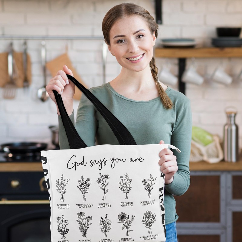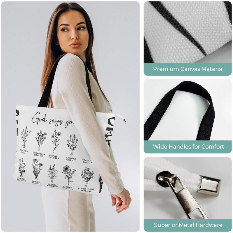LOCKASEN Bible Verse Canvas Tote Bag - Christian Floral Reusable Shopping Bag with Zipper, Inspirational Tote for Women, Sturdy Canvas Bags with Handles for Groceries, Work, and Everyday Use