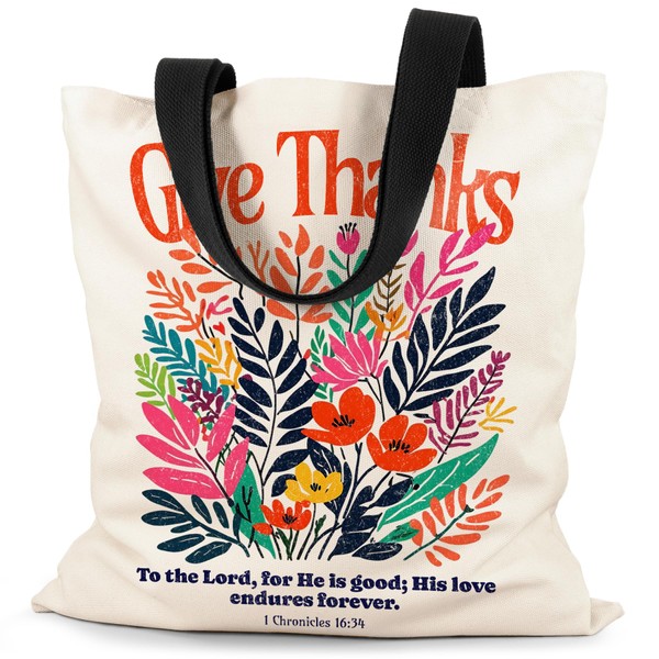 - Upgraded ChristianTote Bag with Double Side Thanksgiving Scripture Design - Our heavy duty bible tote bag is made from robust 16oz cotton canvas fabric, providing superior thickness and durability compared to other's 12oz bags. Featuring widened handles for comfortable carrying by hand or over the shoulder, this tote is designed for everyday use. The durable cotton canvas and reinforced handles ensure long-lasting performance, while the chic aesthetic pattern adds a stylish flair to any outfit.