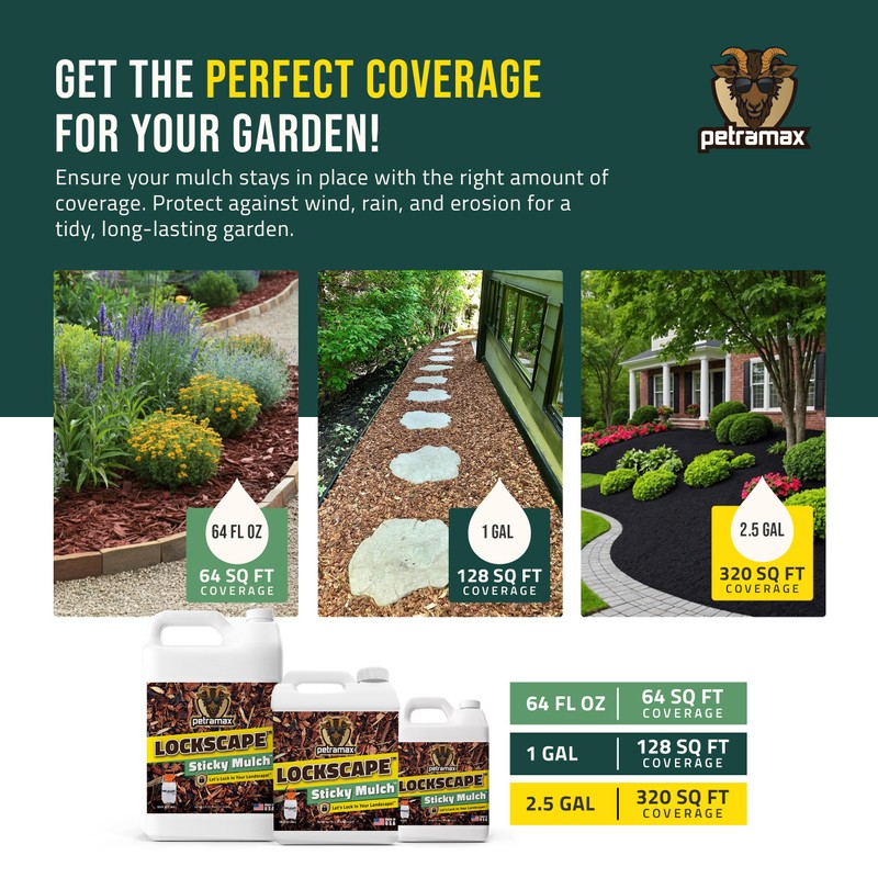 Lockscape Sticky Mulch Glue for Landscaping (64 Ounce) - Lasts Up to 2 Years, Non-Toxic, Ultra Concentrated Landscape Binder - Strong Mulch and Pine Straw Glue for Landscaping, Pine Straw & More