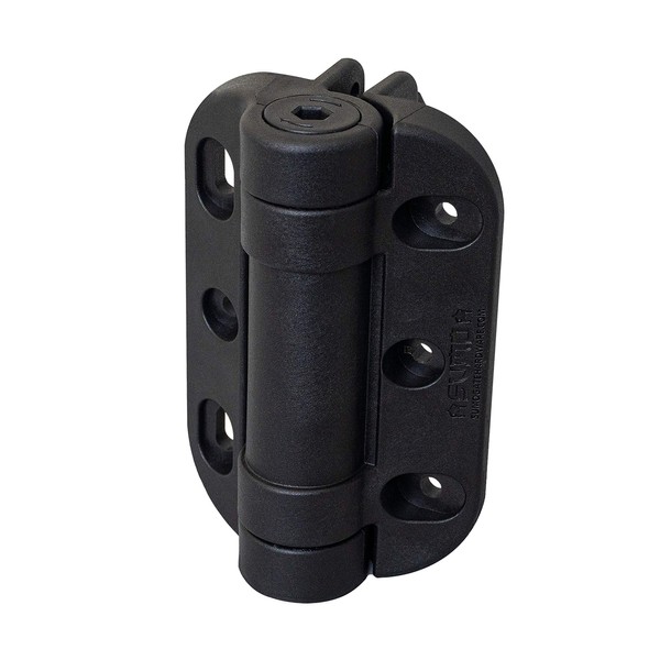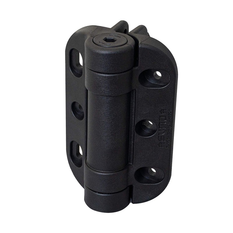 - Surface mount heavy-duty, self-closing, adjustable tension gate hinges
