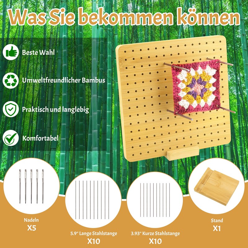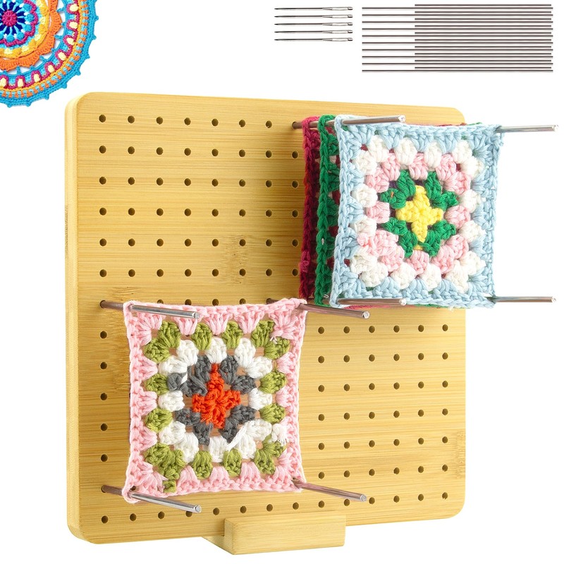 - Granny Square Blocking Board Kit: there are bamboo crochet blocking boards and a solid base, 20 pieces stainless steel rod needles and 5 needles to meet your necessary needs for DIY crochet. It is a good choice for knitting lovers, mothers and grandmothers. Ideal for blocking grandma squares. A blocking board can make your knitting more professional.