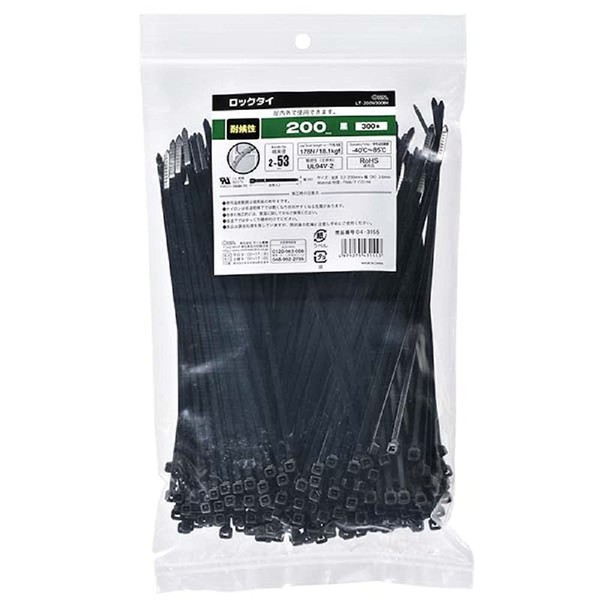 Locking Cable Ties, 7.9 inches (200 mm), Black, 300 Count
