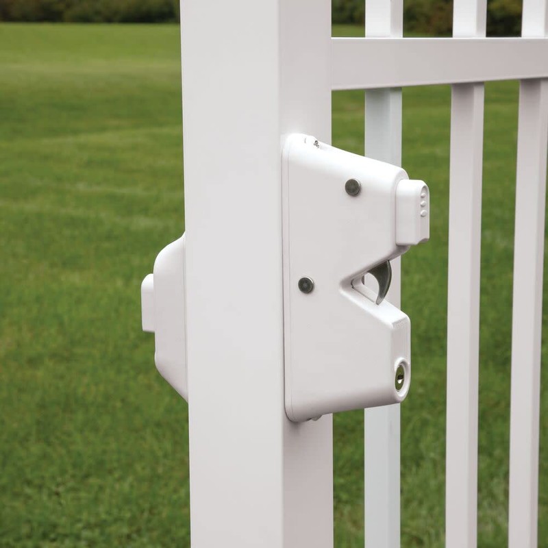 Locking Gravity Latch White (Two-Sided Key Entry)