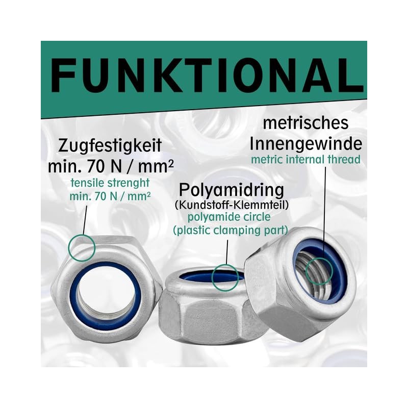 - Locking nut according to DIN 985 / ISO 10511 standard