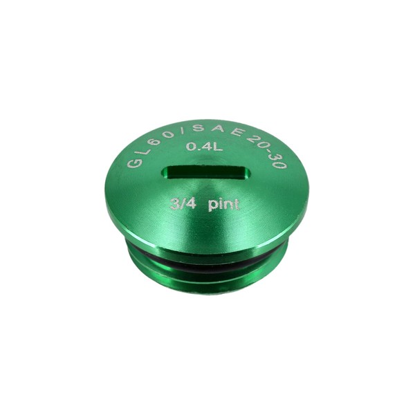 Locking screw, green, anodised aluminium (oil filler opening) with O-ring