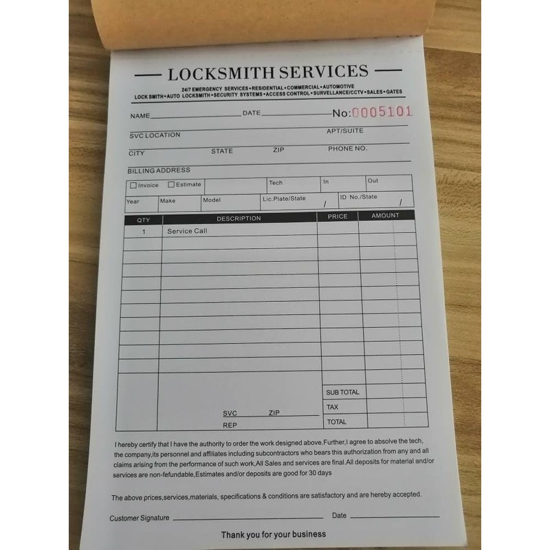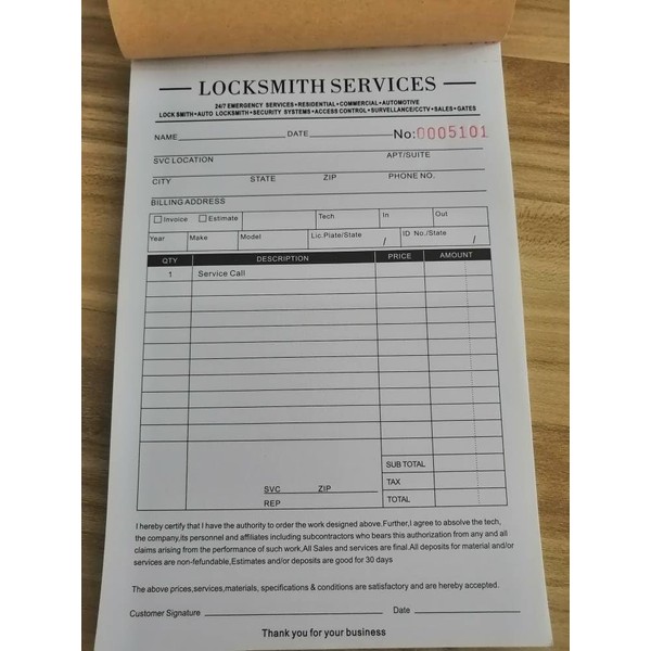 Locksmith Receipt Book: Locksmith Estimate, Invoice, Work Orders for Locksmiths,Locksmith Receipt Sheets, 50 2 Part Carbon Less