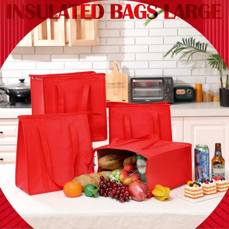 - Convenient Features: these reusable insulated grocery bags are equipped with a zippered top for secure closure, which can prevent spillage and maintain the temperature of your hot or cold products; The presence of dual reinforced handles also makes them easy to carry, adding to their overall convenience and multi functionality