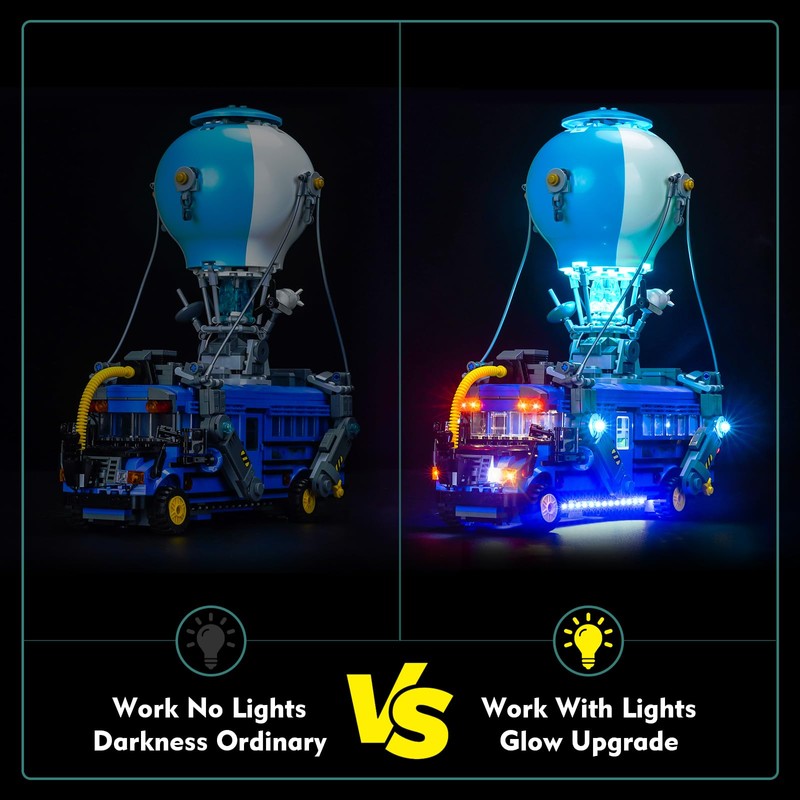 • NO MODEL BUILDING SETONLY THE LIGHT KIT FOR SALE, MODEL NOT INCLUDED. This LIGHTING KIT is specially compatible with LEGO Battle Bus Fortnite. MODELS SET Need to be Purchased Separately or Already Owned by Yourselves.
